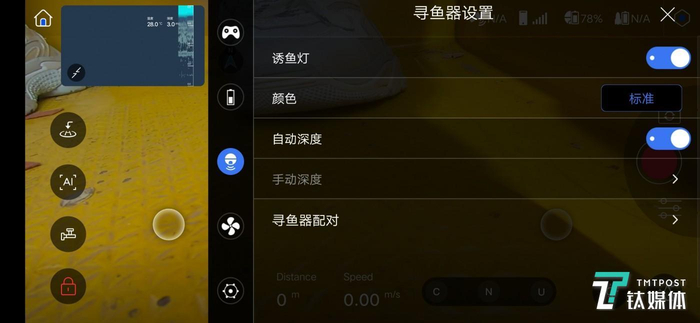 当PowerSeeker智能寻鱼器完成配对过程后,用户可以在APP中对其进行一些功能的调整及远程控制,包括探测深度、诱鱼灯的开关以及颜色等等。