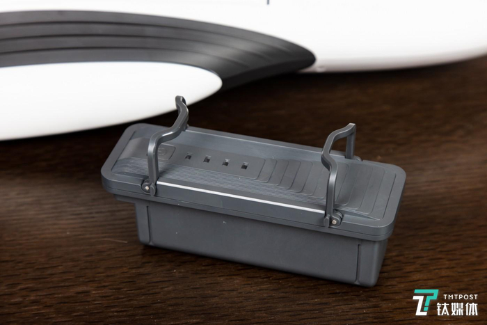 PowerDolphin小海豚使用的电池为一个手提型的设计,在顶部有两个方便拆卸/.固定的提手,加装到无人机中需按压进行锁定。