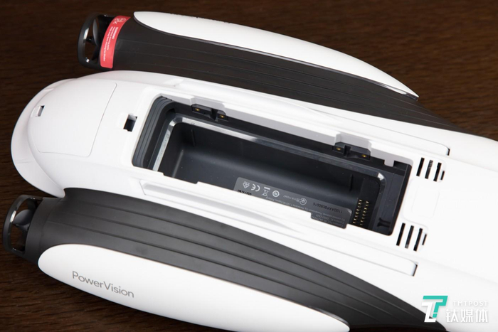 为了保证无人机的整体密闭性,PowerDolphin小海豚的电池仓设计在最顶部,打开盖板后有独立的密闭防水处理。