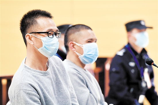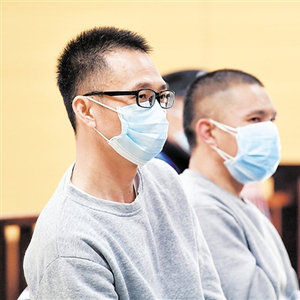 前年11月30日,陈恂敏(左)和陈恩年(中)在番禺沙湾法庭受审 羊城晚报记者 林桂炎 摄