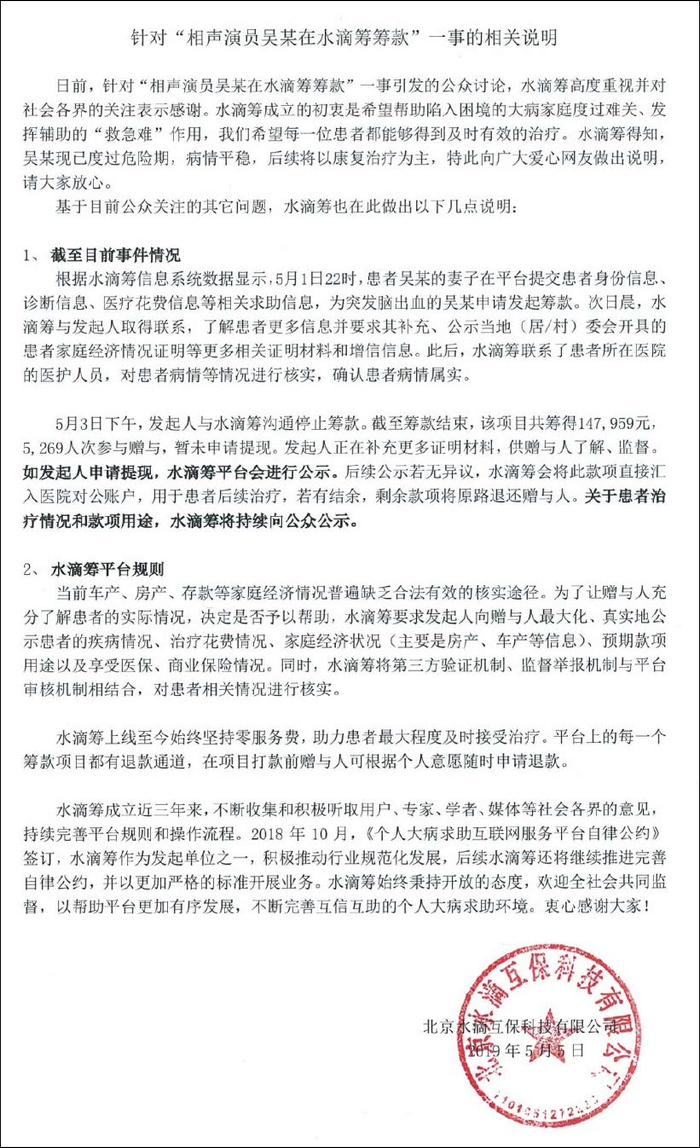 近日,德云社相声演员吴鹤臣(本名吴帅)在水滴筹发起100万元筹款引发广泛质疑。有网友质疑称,在有车有房的情况下,为何还要发起众筹?平台为何能够审核通过?