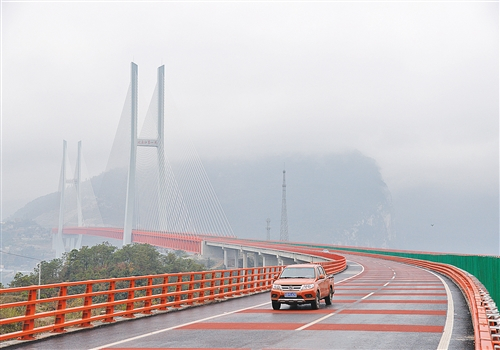 在遍布山地丘陵的贵州省修建道路,桥梁是必须要迈过的一关。而在北盘江峡谷地区建造一座世界级水准的桥梁,面临的挑战和困难就更大了。在贵州高速公路集团有限公司副总工程师周平看来,这些困难和挑战主要表现在,北盘江两岸地势陡峭、地形变化急剧、局部风环境复杂。同时,霜冻、大雾、暴雨、暴雪、酸雨等气象灾害频发,再加上峡谷地形场地狭窄,运输及施工条件极差,修建难度可想而知。