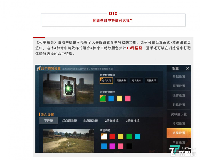 关于具体的不同细节,《和平精英》官方微信称命中特效可根据个人喜好设置,有4种命中特效样式组合和4种命中特效颜色,同时在创意工坊中上线了团队竞技4v4玩法。