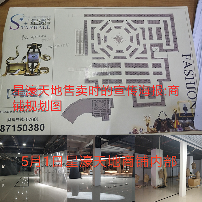 星濠天地位于中山市石岐区大信南路3号2层,分一期和二期销售,总共售出660卡商铺。面积相仿,普遍为不到5平方米的小铺面,可售价却高达20万,均价达4万多元/平方米,是周边住宅及公寓的单价的2倍多。而吸引吴先生购买该商铺的主要原因便是开发商前期宣传时高呼的高额租金回报。吴先生的这一4平方米不到的商铺,在与中山市新濠物业签订的《商铺委托经营管理合同》中,该商铺运营后将支付吴先生近2000元/月的租金。