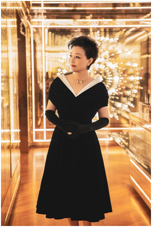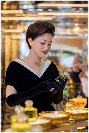 杨澜女士于法国巴黎娇兰之家手持LAN香水