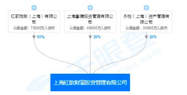 天眼查资料显示,红歆财富是上海红歆财富投资管理有限公司推出的财富管理品牌。红歆财富的股东主要有三个,分别是永柏(上海)资产管理有限公司,占比20%;上海攀腾投资,占比30%;红歆控股(上海)有限公司为第一大股东,占比50%。红歆财富的CEO、总裁为钱旭东,同时也是永柏资本的合伙人。