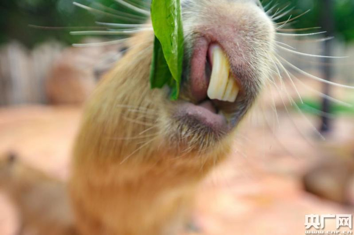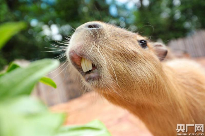 据介绍,水豚是“世界上最大的啮齿动物”,成年体重最大可达132斤,身长可超过134cm,因此总是被戏称为世界上最大的“老鼠”。水豚憨态可掬,最常见的状态就是露出四只大板牙不停吃吃吃,很是魔性,被封为新一代“网红”。