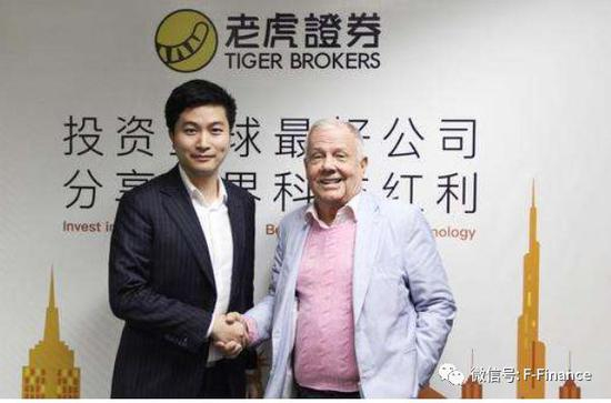 ▲罗杰斯也是老虎证券的投资人,上图为他和创始人巫天华的合影