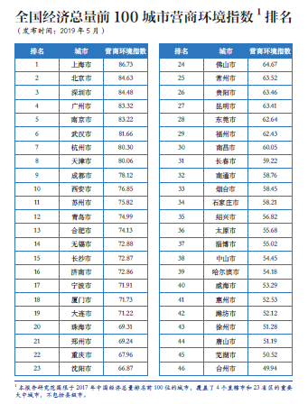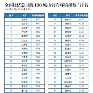 新浪财经讯 2019年5月11日,万博新经济研究院联合中国战略文化促进会、中国经济传媒协会和第一财经研究院发布了《2019中国城市营商环境指数评价报告》(以下简称《营商环境报告》)。根据2019中国城市营商环境指数评价结果,排名前十的城市为上海、北京、深圳、广州、南京、武汉、杭州、天津、成都、西安。