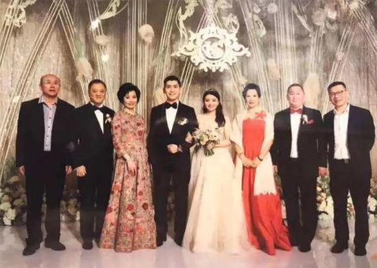 翟美卿长子刘根森与富力地产董事长李思廉之女大婚,右三为翟美卿。