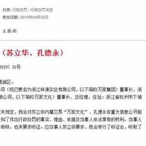而今天这家公司的实控人孔德永又出事了!因为内幕交易被证监会处罚,不过这次处罚的事件,发生在赵薇收购万家文化之前。