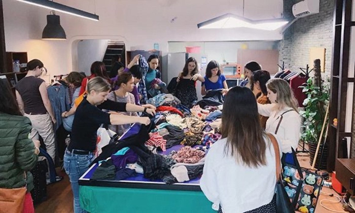 上海静安区一栋旧式洋房的一楼,五十多个外国女生一面喝着Sangria水果酒,一面兴奋地交换着自己带来的衣服、包包和配饰,她们正在参与一个线下“春季互换”(Spring Swap)活动。