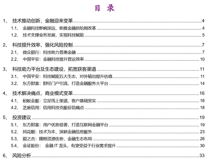 监管风险。若监管机构对金融科技监管政策趋严,可能导致金融科技业务发展受到影响,从而影响相关公司业务发展及业绩表现。