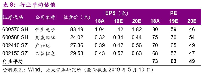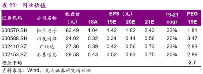 (2)随着金融行业监管力度加强,预计公司定制软件业务收入恢复增长,预计2019-2021年收入同比分别增长15%、14%、13%。