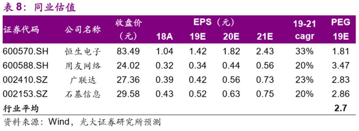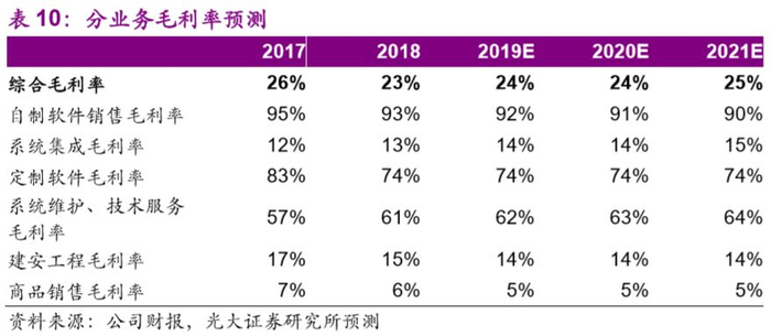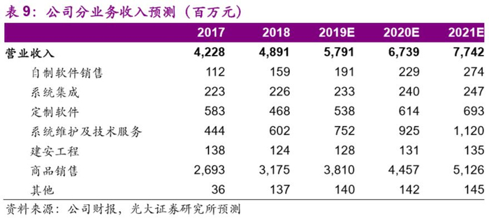 (3)预计公司系统集成业务整体保持稳定,预计2019-2021年收入同比分别增长3%、3%、3%。