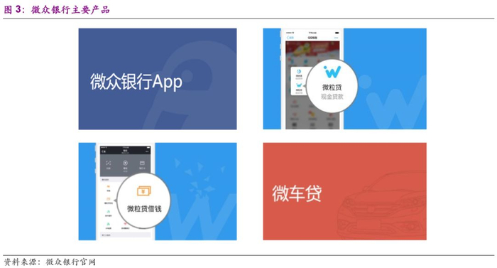 微众银行自2014时年成立时便确定了不设立线下物理网点、无需财产担保的发展思路,以线上数字化业务打破时间和空间限制、降低服务成本和准入门槛。