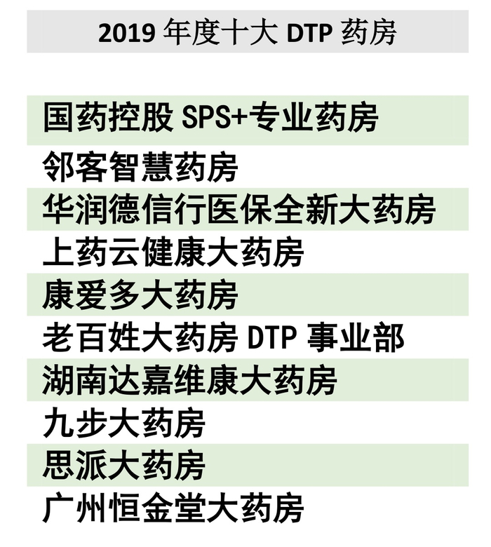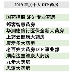 新京报讯(记者 王卡拉)5月10日,在中国医药物资协会主办的“2019中国DTP及处方药零售大会”上,“2019年度十大DTP药房”揭晓,国药控股SPS+专业药房、邻客·智慧药房、上药云健康大药房等十大药房上榜。