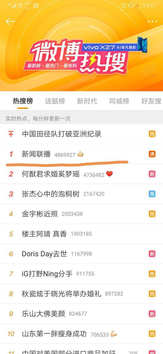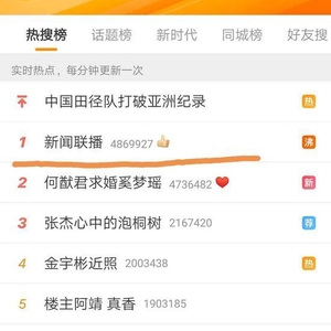 昨晚《新闻联播》再次上了热搜榜!而且一度直冲榜1位置!
