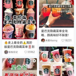 这些“隐藏菜单”在社交媒体上也频频受到追捧,推荐原因大多是饮品“颜值很高”或是“味道很好”,并且也有不少消费者在社交媒体上表现出了对“隐藏菜单”跃跃欲试的态度。