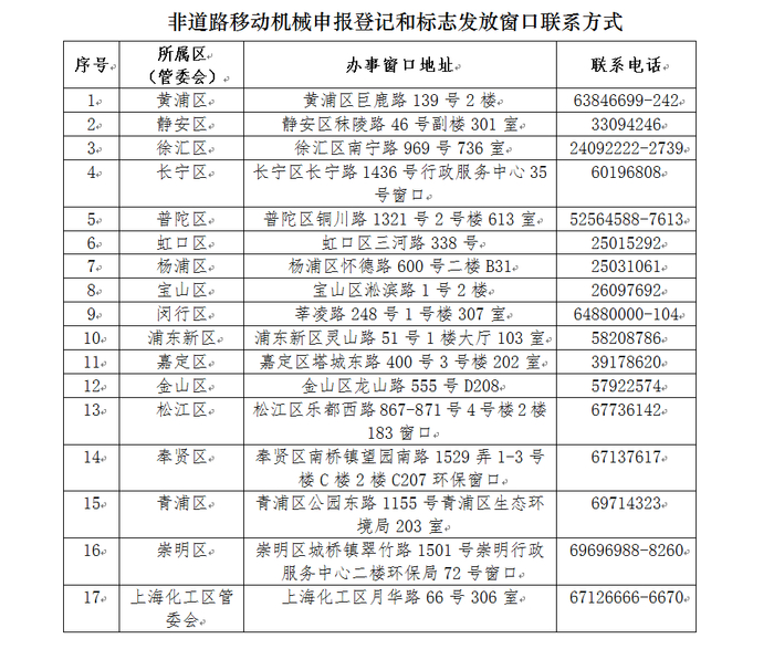 (2)申报登记相关问题电话咨询区办事窗口(见附表);