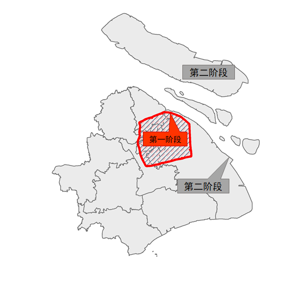 答:分为两个阶段落实施,从中心城区入手,逐步扩大至全市范围。