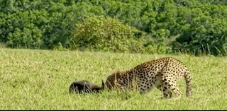 一只小羚羊无法像妈妈那么冷静,一个没有忍住,它被猎豹一击致命。