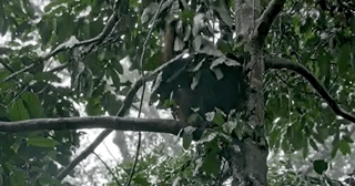 常年待在树上的红毛猩猩,终于等到了一场降雨,可以秀一次“做雨伞”的技能,下一次还要等多久,没有动物知道 / 《水深火热的星球》
