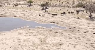 行进的过程中,它们会经过大型捕食者狮子的领地。