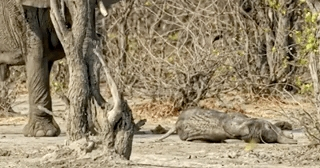 失去小象的妈妈无能为力,只能悲鸣一声,和象群一起继续前进。