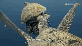 以海草和藻类为生、看似温驯的绿海龟,在争夺配偶的关键时刻,也可以毫不嘴软的咬下竞争对手的肉。