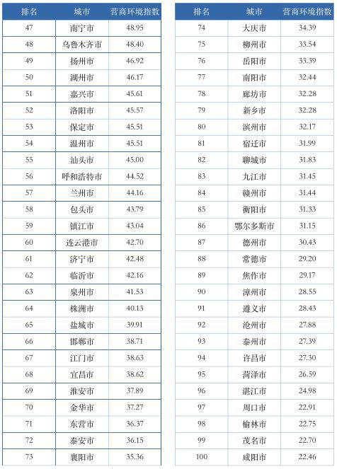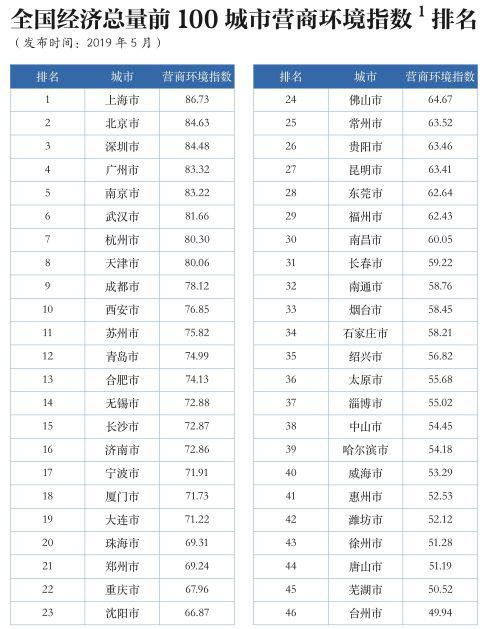 以下为报告全文,《全国经济总量前100城市营商环境指数排名》全名单详见文末。