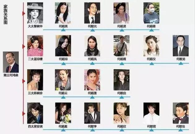 何鸿燊一共娶了四房太太,共为他生育了17个子女。四位太太各自为政,一个庞大而复杂的家族就此建立。