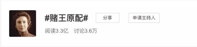 今日,#赌王原配#登上微博热搜,阅读量达3.3亿。