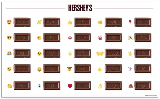 不过好时(Hershey's)要在125年以来,第一次变更标志性牛奶巧克力棒的外观——别担心认不出来,它只是在每格巧克力上,都刻上了不同的emoji表情,看上去就像是emoji键盘。