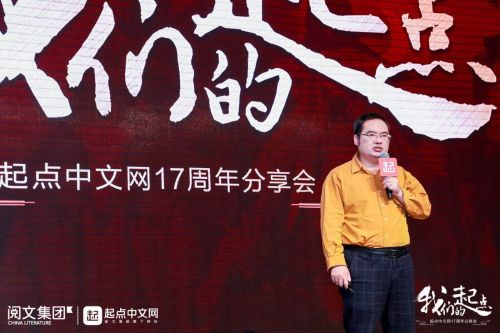 各位作家、读者,各位合作伙伴,各位媒体朋友,我是起点中文网的001号员工,吴文辉。感谢今天大家从五湖四海赶来,为起点庆生。