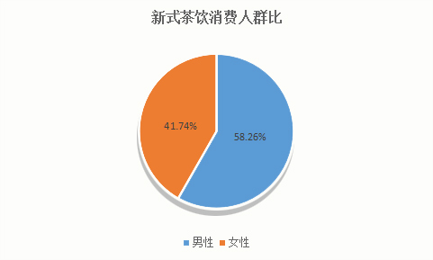 根据极光大数据发布的《2018年第二季度网红奶茶店人群研究报告》,以喜茶和奈雪の茶客群为研究对象,两大新式网红茶饮人群的三大标签分别是“年轻”、“白领”、“女性”。其中,女性占比58.26%,男性占比41.74%。