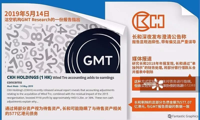 5月14日晚间11点左右,长和发布澄清公告,怒斥GMT沽空报告所言不实,并称“董事会强烈否认报告导言所含影射”、“集团之经审核财务报表乃严格遵守适用香港财务报告准则” 。至于待售资产有关债务未综合入账,长和表示此事已与信贷评级机构讨论,且符合适用会计准则要求。