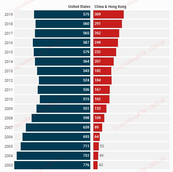 上榜中美企业数量 “此消彼长”