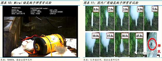 面对事故和极端试验环境,车辆依然保有良好的安全性能。以丰田提供的案例,无论是子弹贯穿还是泄漏点火,车载储氢瓶都没有出现炸裂或者爆炸现象发生。并且由于氢气的强扩散性,即使在相对密闭的地下停车场或者隧道,氢气泄漏也较难引起爆炸事故。