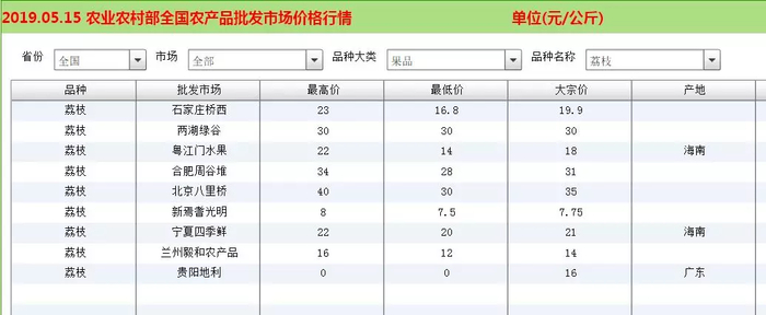 中国农业信息网数据显示,就荔枝这一种类,各地农产品批发市场的价格天差地别,便宜的市场价格仅仅相当于高价的零头。