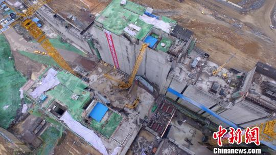 世界最高船闸闸门大藤峡水利枢纽船闸下闸首人字门启动安装 设计高度47.5米