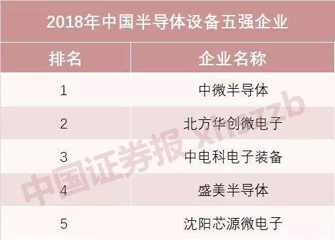 设备方面,生产等离子刻蚀设备的中微半导体排名从2017年的第三名上升到第一名,公司正在冲击科创板,已获上交所问询。北方华创全资子公司北京北方华创微电子装备有限公司维持第二名,中电科电子装备集团有限公司则从2017年的第一名下滑至第三名。