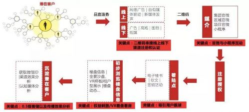 再比如房间标签体系。泰禾一方面运用最新的技术展示手段,使用3D、VR、以及视频和直播等手段,更全面完善的展示真实的房间信息,另一方面各类房间户型的各类特点和属性标签也会在微信平台一一展现出来。通过微信社交营销的方式,有针对性的结合目标人群的行为特点去分析。这可以很好地运用在获客、储客环节。