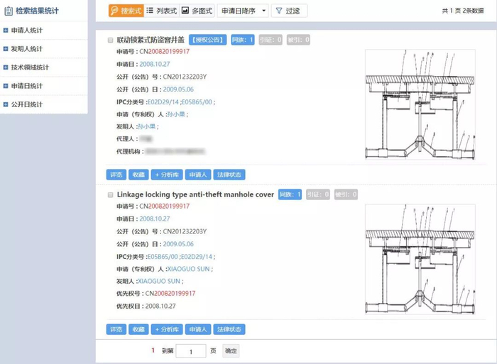 澎湃新闻注意到,2008年10月27日,一名叫孙小果的申请人曾就其发明的联动锁紧式防盗窖井盖申请国家专利。
