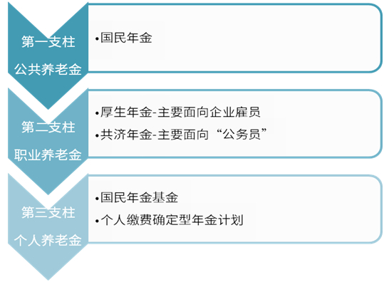 日本的养老金分为三大体系:公共养老金制度,企业补助养老金制度和个人储蓄养老金制度。这三部分的构成,让日本的养老基金制度能够一层又一层地进行叠加来保障国民的基本生活。