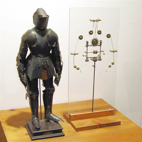 1495年,达·芬奇在其资助人米兰公爵斯福尔扎府邸展示了他发明的机器人,这架骑士模样的机器人,严格按人体解剖学设计,能站立、坐下、摘掉头盔,两臂可独立活动,下巴也非常逼真,内部有滑轮和绳索操控各个关节。上世纪50年代,人们根据达·芬奇制作机器人的图纸制造了“列奥纳多机器人”模型,各个肢体确实能灵巧活动。