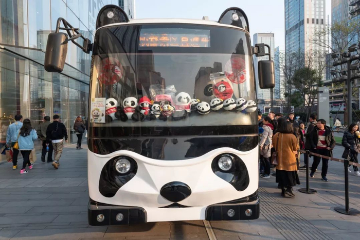 (成都太古里中心的旅游交通车,专门为方便旅客而设定,主要循环往来于成都各大旅游景点,锦里,武侯祠,宽窄巷子,摄影师@亚美尼亚的海)