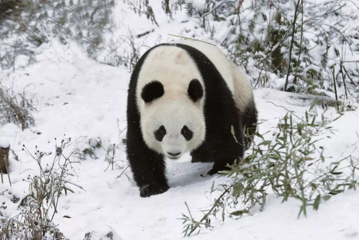 (参与野化训练研究的大熊猫,图片来源@成都熊猫基地)