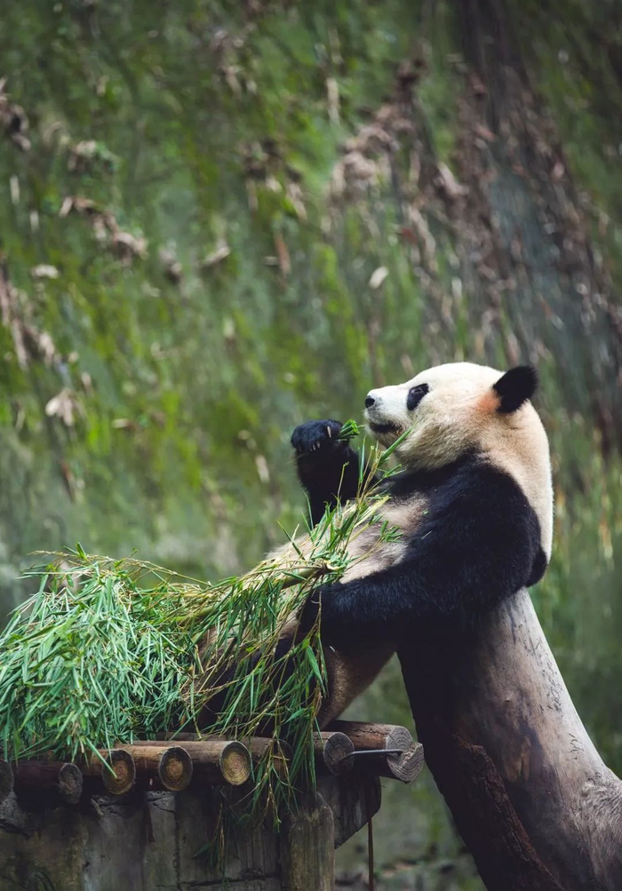 (上述数据依据胡锦矗《物种特征与生存之谜》;下图为专心进食的熊猫,摄影师@不会跑酷的摄影师)