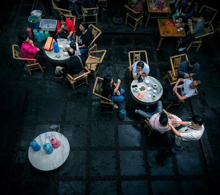 (茶楼是成都人休闲娱乐谈事情的好地方,下图为近百岁的成都鹤鸣茶社,摄影师@嘉楠)